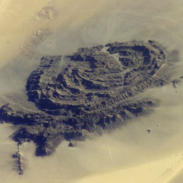 Jebel Arkanu ist ein Bergmassiv in der libyschen Wüste, das zu den bedeutenden historischen Orten Libyens gehört. Das Gebirge zeigt steile Felsformationen und beherbergt Felsgravuren, die von den Menschen erzählen, die diesen rauen Ort über Jahrtausende hinweg bewohnten. Mit seinem höchsten Punkt von 1435 Metern bietet Jebel Arkanu einen Einblick in die lange Geschichte der menschlichen Anpassung an die Wüstenlandschaft.