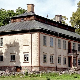 Das Hauptgebäude steht auf erhöhtem Gelände, umgeben von Wiesen, Feldern, Espen- und Eichenhainen neben dem Vänern-See.