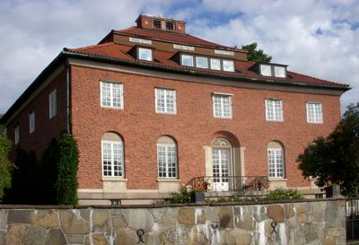 Das Haus verbindet nationale romantische Formensprache mit nordischen klassischen Elementen, was sich in geschwungenen Dachkanten und dem Walmdach zeigt. Die rote Backsteinarchitektur prägt das Erscheinungsbild der Diplomatstaden bis heute.
