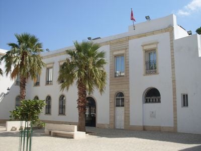 Der Palast von Kheireddine ist ein Gebäude aus dem 19. Jahrhundert in der Medina von Tunis, das eine Mischung aus traditioneller räumlicher Gestaltung und europäischen Elementen aufweist. Die Fassade ist durch breite straßenseitige Öffnungen und goldene Verzierungen gekennzeichnet, die den ehemals wichtigen Status widerspiegeln.