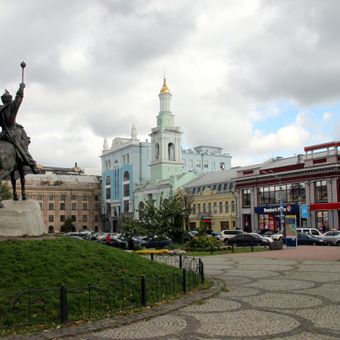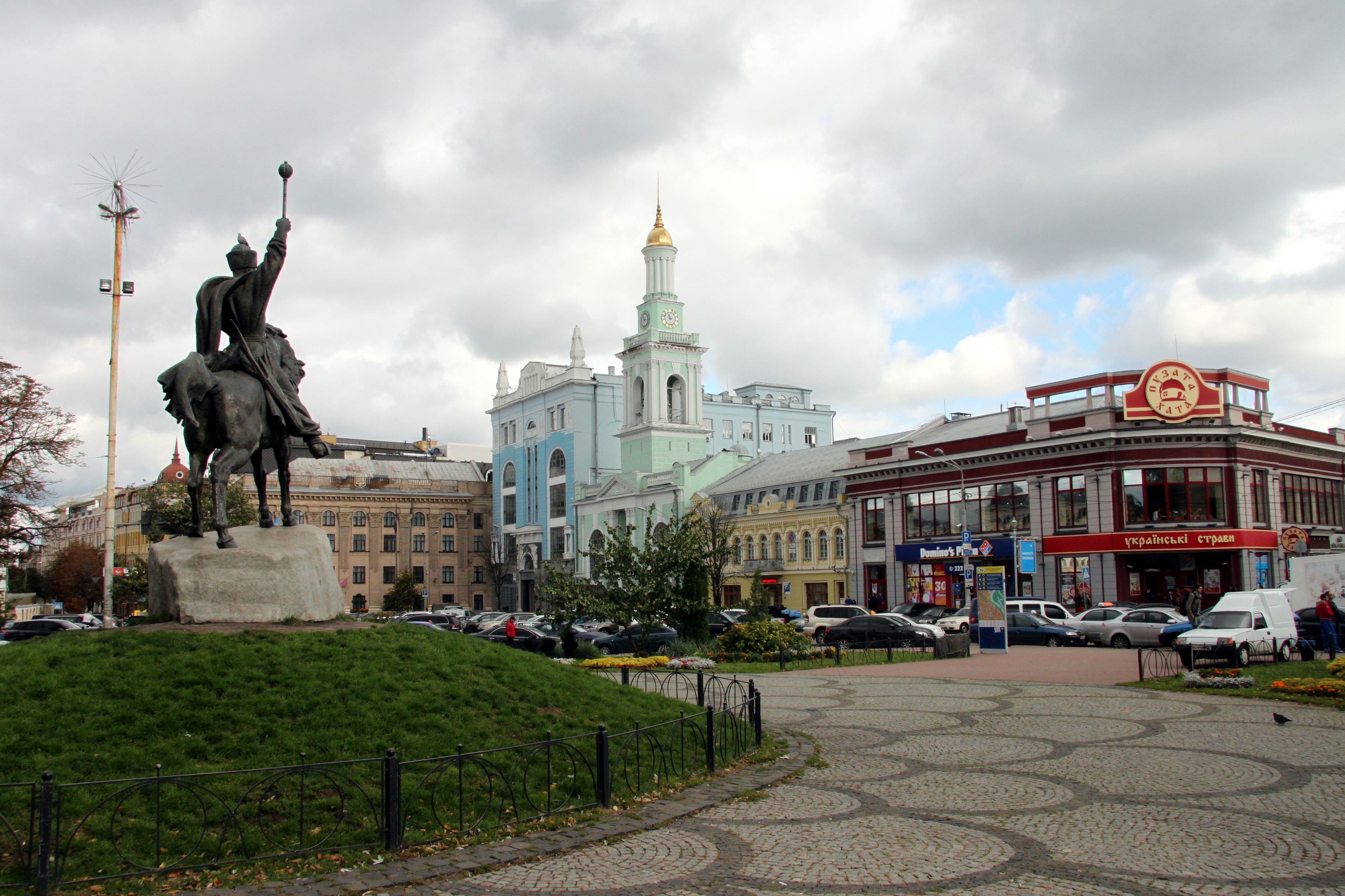 Das Monument zeigt Petro Sahaidachny zu Pferd, in Bronze gegossen, an einer Kreuzung nahe dem Kontraktova-Platz.
