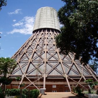 Die kreisförmige Kirche verfügt über 22 Kupferkuppeln und integriert Elemente traditioneller afrikanischer Architektur in ihr modernes Strukturdesign.