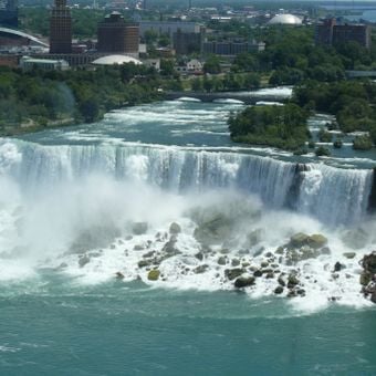 Die amerikanischen Fälle stürzen aus einer Höhe von 34 Metern mit einer Breite von 320 Metern herab und führen tausende Liter Wasser pro Sekunde.