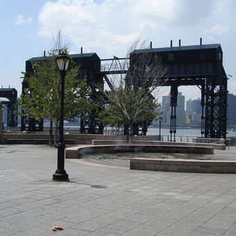 Der 5 Hektar große Park verfügt über vier Piers am East River und restaurierte Industriekräne aus dem frühen zwanzigsten Jahrhundert.