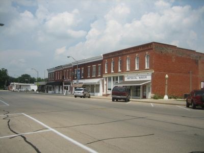 Die Gebäude des Bezirks zeigen die architektonischen Muster und geschäftlichen Aktivitäten einer kleinen Stadt des Mittleren Westens seit dem späten 19. Jahrhundert.