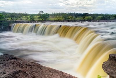 Der Yuruaní-Wasserfall ist eine Wasserkaskade im Canaima-Nationalpark in Bolívar, die über eine steile Felswand stürzt und zu den vielen natürlichen Wasserfällen dieser bergigen Region gehört. Das Wasser fließt weiter im Yuruaní-Flusssystem durch Gesteinsformationen, die seit Millionen von Jahren existieren.