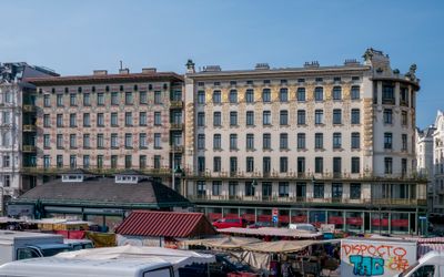 Die Gebäude am Naschmarkt beherbergen Wohnungen und Geschäfte im Erdgeschoss, mit regelmäßigen Führungen für Architekturinteressierte.