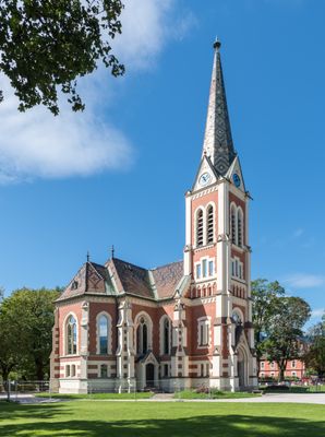 Kirche im Stadtpark, Neugotische Pfarrkirche im Stadtpark, Villach, Österreich.