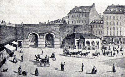 Ein Mosaik an einem Gebäude an der Rotenturmstraße markiert den ehemaligen Standort dieser mittelalterlichen Struktur nahe dem Donaukanal.