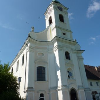 Der Bau der heutigen Kirchenstruktur begann 1765 und ersetzte eine frühere Kapelle, die Mathias von Haring Anfang des 17. Jahrhunderts errichtet hatte.
