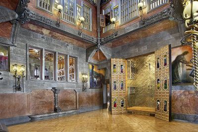 Der Palau Güell ist ein siebenstöckiges Wohnhaus im El Raval mit parabolischen Bögen, schmiedeeisernen Details und Steinpfeilern, die einen hohen Kuppelsaal tragen. Der Innenraum verbindet verschiedene Ebenen durch ein großzügig angelegtes Atrium und zeigt durchgehend die charakteristische Handschrift der katalanischen Moderne.