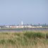 El Poble Nou del Delta ist eine Siedlung im Ebro-Delta mit zweistöckigen weißen Häusern, die Innenhöfe umgeben. Die Straßen sind mit Palmen bepflanzt und führen zu einer Kirche mit charakteristischem Glockenturm im Zentrum.