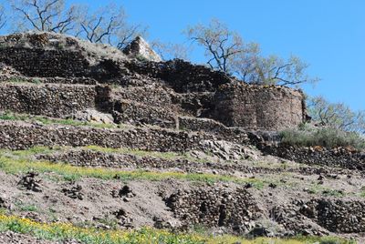 Die Überreste der Burg zeigen islamische Militärbautechniken mit erhaltenen Mauern, Türmen und unterirdischen Kammern der regionalen Architektur.