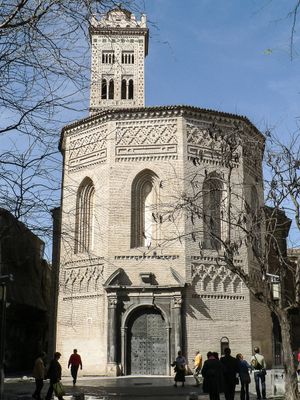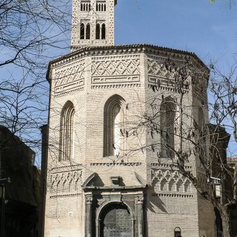 Die Kirche zeigt die Verschmelzung islamischer Architekturtechniken mit christlichen Entwürfen durch glasierte Keramikstücke in aragonischen Mustern.