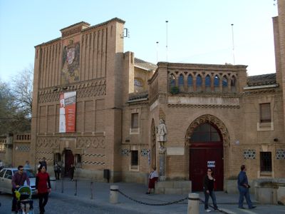 Das Gebäude zeigt Merkmale des Neo-Mudéjar-Stils mit aufwendigen Ziegelverzierungen und dem Wappen der Katholischen Monarchen, das den Adler des Heiligen Johannes trägt. Diese architektonischen Details spiegeln die historische Verbindung Toledos zu Handwerk und künstlerischen Traditionen wider.