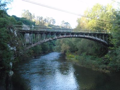 Die Puente de Golbardo ist eine geschützte Betonbogenbrücke in Reocín, die den Fluss Saja überquert. Sie besteht aus zwei bogenförmigen Bögen, die das Wasser überbrücken und ein schmales Deck für den Verkehr tragen.