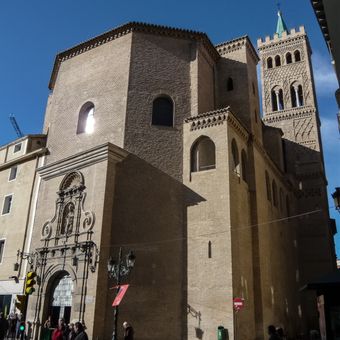 Nach der christlichen Eroberung von Saragossa 1118 wurde ein romanischer Tempel über einer römischen Straße errichtet, später durch diese Mudéjar-Kirche ersetzt.