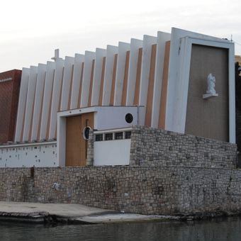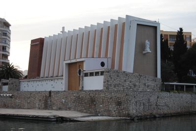 St. Nicholas, Religiöses Gebäude aus dem 20. Jahrhundert im Stadtteil El Grau, Gandia, Spanien.