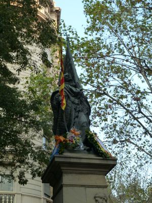 Rossend Nobas schuf das Denkmal 1888 zu Ehren von Rafael Casanova, der Barcelona während des Spanischen Erbfolgekriegs verteidigte.