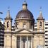 Die Kirche weist einen griechischen Kreuzgrundriss mit Zentralkuppel und zwei quadratischen Türmen auf, die einen Portikus mit ionischen Säulen flankieren.