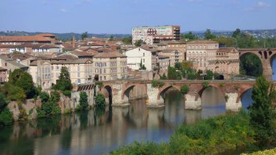 Die Stadt erstreckt sich entlang des Flusses Tarn auf 169 Metern über dem Meeresspiegel, umgeben von Hügeln und Agrarland in Südfrankreich.
