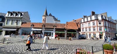Deauville ist eine Küstengemeinde im Departement Calvados in der Normandie, die sich entlang des Ärmelkanals erstreckt und für ihren breiten Sandstrand und ihre eleganten Villen bekannt ist. Die Architektur verbindet normannische Fachwerkhäuser mit Gebäuden aus dem neunzehnten Jahrhundert, die sich um den zentralen Marktplatz und die Hafengegend gruppieren.