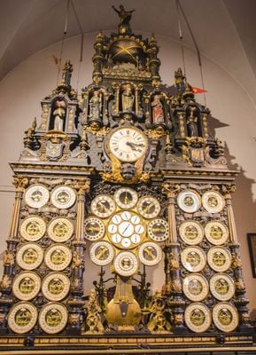 Die Uhr enthält 30.000 mechanische Teile und zeigt auf 70 Zifferblättern 122 verschiedene astronomische und zeitliche Messungen an.