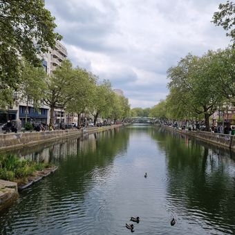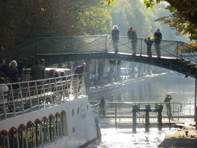 Der Canal Saint-Martin ist ein Wasserweg durch das 10. und 11. Arrondissement von Paris, der den Canal de l'Ourcq mit der Seine verbindet. Neun Schleusen heben und senken die Boote durch die Stadt, und eiserne Brücken überspannen das grüne Wasser.