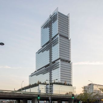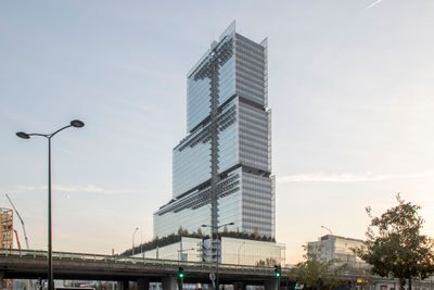 Das Pariser Tribunal erreicht 160 Meter mit gestapelten Glasvolumen, die sich zur Spitze des Gebäudes hin verkleinern.