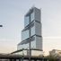 Drei raumhohe Atrien mit Oberlichtern beleuchten 50 Empfangstresen, während externe Glasaufzüge entlang der Fassade fahren.
