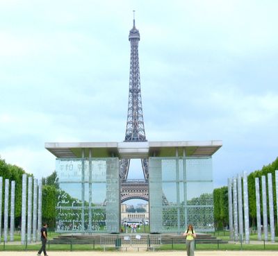 Das Monument befand sich in den Champ de Mars Gärten, bot einen klaren Blick auf den Eiffelturm und verfügte über Terminals für Friedensbotschaften.