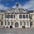 Das Rathaus zeigt eine symmetrische Fassade mit klassischen Elementen, einschließlich Steinmetzarbeiten, hohen Fenstern und einem zentralen Uhrenturm.