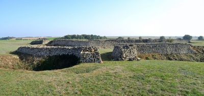 Diese prähistorische Einfriedung besteht aus drei konzentrischen kreisförmigen Gräben auf zwei Hektar Land mit Kalksteinmauern.