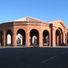 Das ovale klassizistische Gebäude erstreckt sich über 26 Meter Länge und 22 Meter Breite mit zwanzig Arkaden aus rosa Ziegelsteinen.