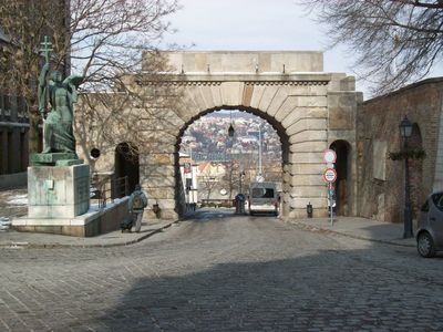 Das heutige Tor, entworfen von Architekt Jenő Kismarty-Lechner, enthält eine Skulptur eines laufenden Engels und gedenkt der Rückeroberung Budas 1686.