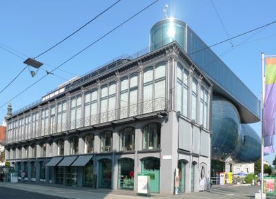 Das Eisernes Haus ist ein Gebäude in Graz mit einem innovativen Stahlrahmen in den Obergeschossen, während die unteren Etagen aus traditionellem Mauerwerk bestehen. Die Struktur zeigt den Übergang von klassischen zu modernen Bautechniken des 19. Jahrhunderts.