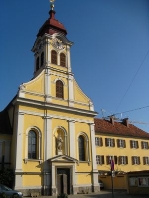 Die Kirche entstand auf dem Gelände eines früheren Klosters mit der benachbarten Antoniuskirche, die 1786 aufgelöst wurde. Die Josephinischen Reformen führten zur Umwandlung in eine Pfarrkirche unter Ludwig Jakomini.