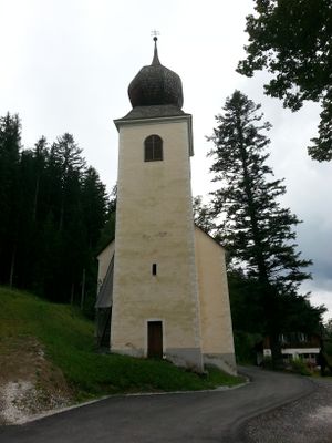 Die Filialkirche St. Radegund verfügt über einen kräftigen Kirchturm und beherbergt eine Statue der heiligen Radegund auf dem Hochaltar bei den Koordinaten 47.181073, 15.11586.
