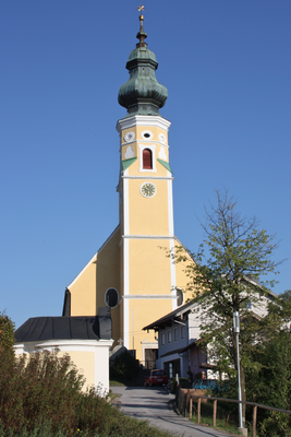 Pfarrkirche Ostermiething, Pfarrkirche mit Friedhof in Ostermiething in Oberösterreich