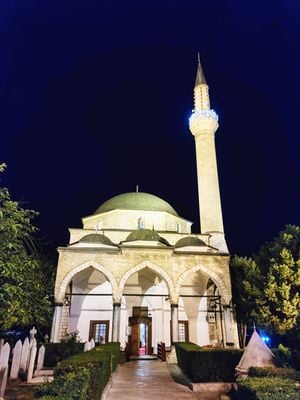 Die Moschee im Zentrum von Sarajevo hält regelmäßige Gebetsdienste ab und ermöglicht Besuchern die Besichtigung ihrer architektonischen Details.