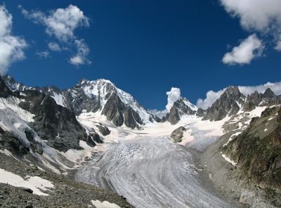 Die Gletscherformation entspringt an den östlichen Hängen der Aiguille d'Argentière und Aiguille du Chardonnet mit einer Höhe von 3,400 Metern.