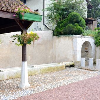 Gedeckter Brunnen, Zierbrunnen in Soral im Kanton Genf, Schweiz