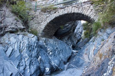 Bogenbrücke über die Raspille, Raspille-Brücke in Miège im Kanton Wallis, Schweiz