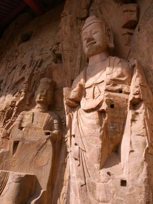 Die Mittelpfeiler-Höhlen zeigen detaillierte buddhistische Schnitzereien mit sitzenden Buddhas, Bodhisattvas, Schülern, Himmelskönigen und Musikern mit zeitgenössischen Instrumenten.