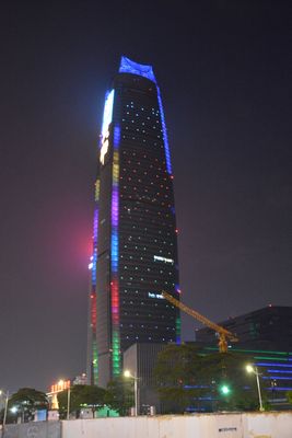 Der Dongguan TBA Tower erhebt sich 289 Meter mit seiner Glas- und Stahlstruktur, die 73 Stockwerke über der Erde und 4 Untergeschosse umfasst.