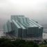 Das Theater steht auf einem Vorgebirge am Jangtse-Fluss mit einem steinernen Unterbau, der seine kantige Glasaußenstruktur trägt.