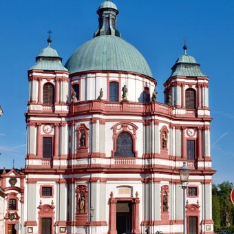 Die Kirche zeigt barocke Architekturelemente mit einer Innengestaltung von Johann Lukas von Hildebrandt in Nordböhmen.