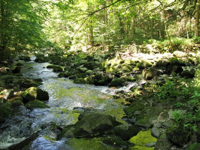 Die Buchberger Leite ist eine Schlucht in Hohenau, die etwa 5 Kilometer lang ist und sich 200 Meter breit durch die Landschaft zieht. Der Fluss Wolfsteiner Ohe hat sich über lange Zeit durch das dunkle Gestein gegraben und dabei eine beeindruckende Tiefe von etwa 100 Metern erreicht.