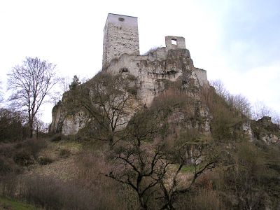 Die Steinbefestigung steht auf jurassischen Felsen über der Stadt Wellheim und verfügt über einen quadratischen Turm aus Quadersteinen mit 35 Metern Höhe.