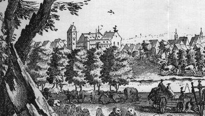 Die Steinfestung zeigt Verteidigungsmauern und Türme, die Wohnquartiere innerhalb ihres mittelalterlichen Befestigungssystems im Zentrum von Dieburg integrieren.